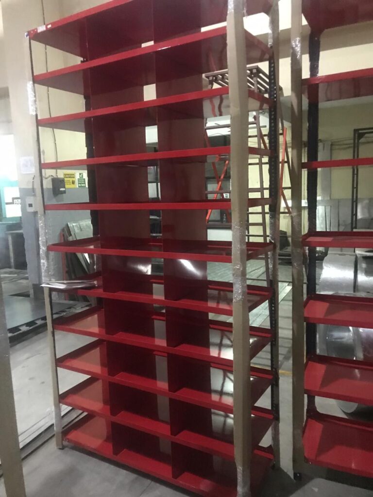 | Thickness | Upright Angles: 1.6 mm – 2.0 mm thick steel (for strong load-bearing capacity) Shelves (Panels): 1.0 mm – 1.2 mm steel sheet (powder-coated)1.2 mm – 2 mm (as per requirement) |