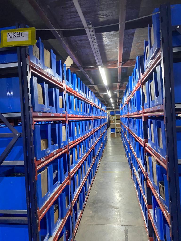 | No. Of Shelves | 4–5 Storage Levels per rack Each level fitted with multiple plastic bins |